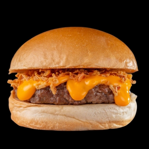 PÃO DE BRIOCHE SELADO NA MANTEIGA, 1 HAMBÚRGUER ARTESANAL BOVINO 150G, QUEIJO CHEDDAR CREMOSO, CEBOLA CARAMELIZADA, BA... Ver completo
